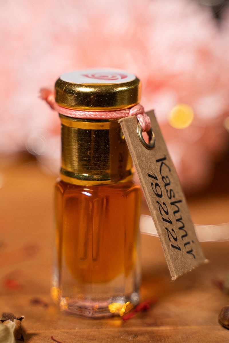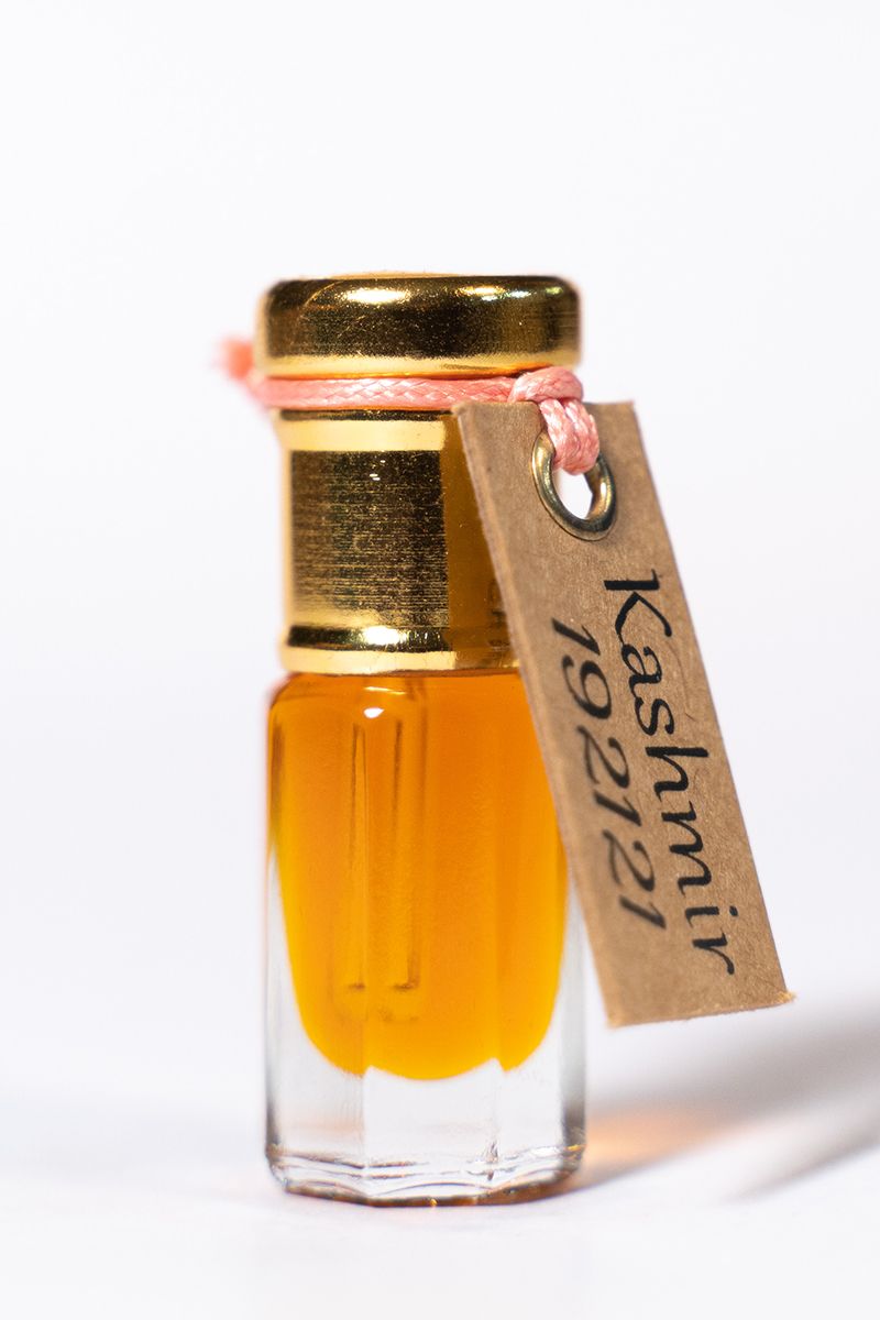 This is a unique combination of Kashmir Saffron thoughtfully co distilled with the famous Attar Shamama of Kannauj. The distillate is further blended with other natural and synthetic fragrance raw material to give the final architecture of the attar. It is a scent vacillating between warm saffron, rose honeyed leather pinch with an Earthy hay like first impression which further leads to a unique creamy and spicy. Kashmir 192121 has a lot of character to it. It is a versatile attar which flirts with different notes. From being an out and out floral, sweet, a little peach like with a lactonic undertone to being a tad spicy and sour.
